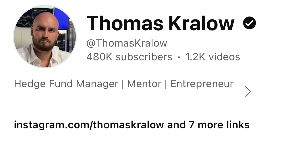 Thomas Kralow or his company is not an investment, financial, tax, or legal advisor or a broker-dealer and does not purport to provide personalized investment, financial, tax, or legal advice in any form. The Company does not recommend the purchase of particular securities, nor does the Company promise or guarantee any particular investment results. You understand and acknowledge that there is a very high degree of risk involved in trading securities and, in particular, in trading futures, options, spot and crypto in general. You acknowledge and agree that you, and not the Company or Thomas Kralow personally, are solely responsible for your own investment research and decisions. Do not trade with money that you cannot afford to lose. You understand that Thomas Kralow and all associated companies encourage you to investigate and fully understand any and all risks before investing or trading. The Company and Thomas Kralow assume no responsibility or liability for your trading and investment results, and you agree to hold the Company and Thomas Kralow harmless for any such results or losses. You acknowledge and agree that by copying the trades of Thomas Kralow on Bybit, including following the signals provided by his team of traders, you are doing so at your own risk, and neither Thomas Kralow, nor his company, nor Bybit, is or will be responsible for your actions, your trading or investing performance, or monetary results.