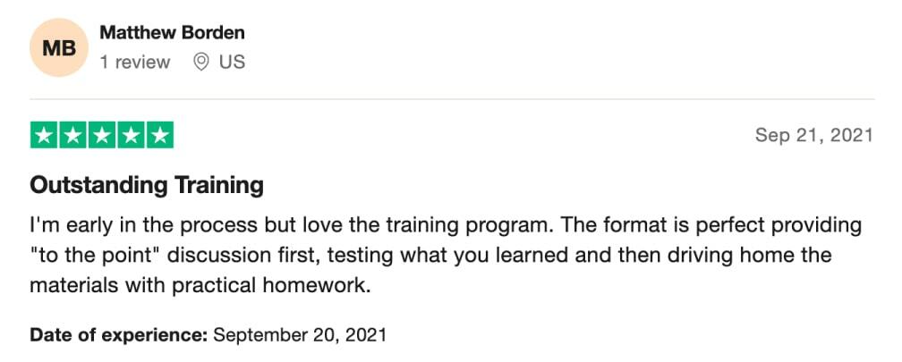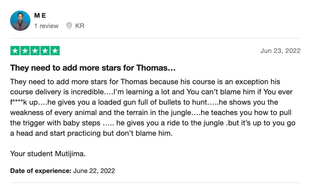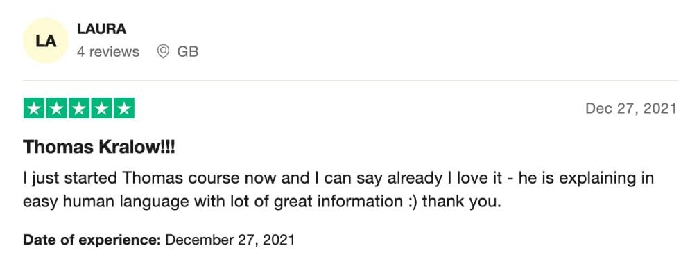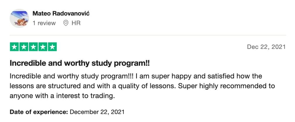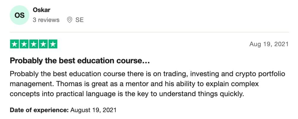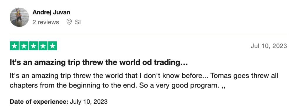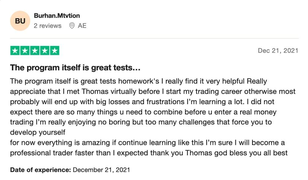 I've already taken trading courses, but I quickly became disappointed in them, there was no practical value. At Thomas's education, I finally don't feel lost. I learned to think and make decisions like a profitable trader. I have guidance and mentorship. I learned money and risk management, great technical analysis. The program takes you into baby steps so you get your result.